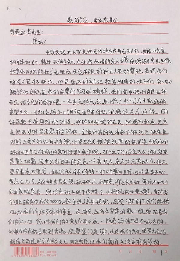 沂沂妈妈写给李先生的书信