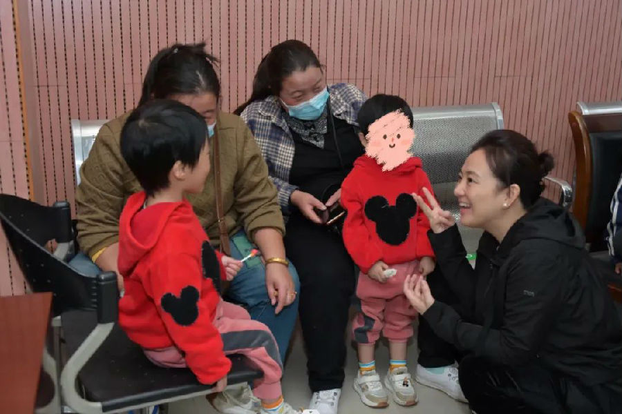 郭子源总干事与孩子及家属交流,了解一线情况